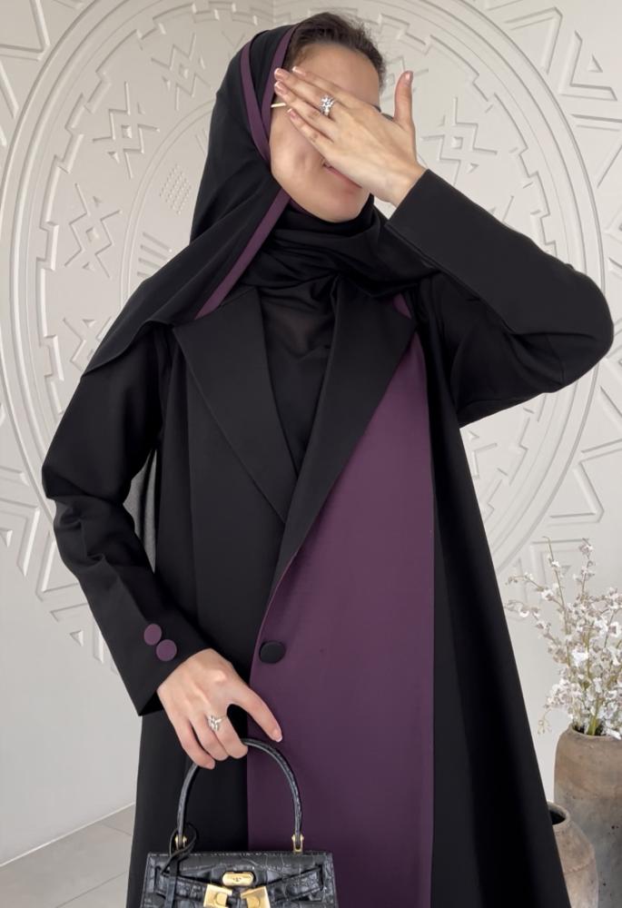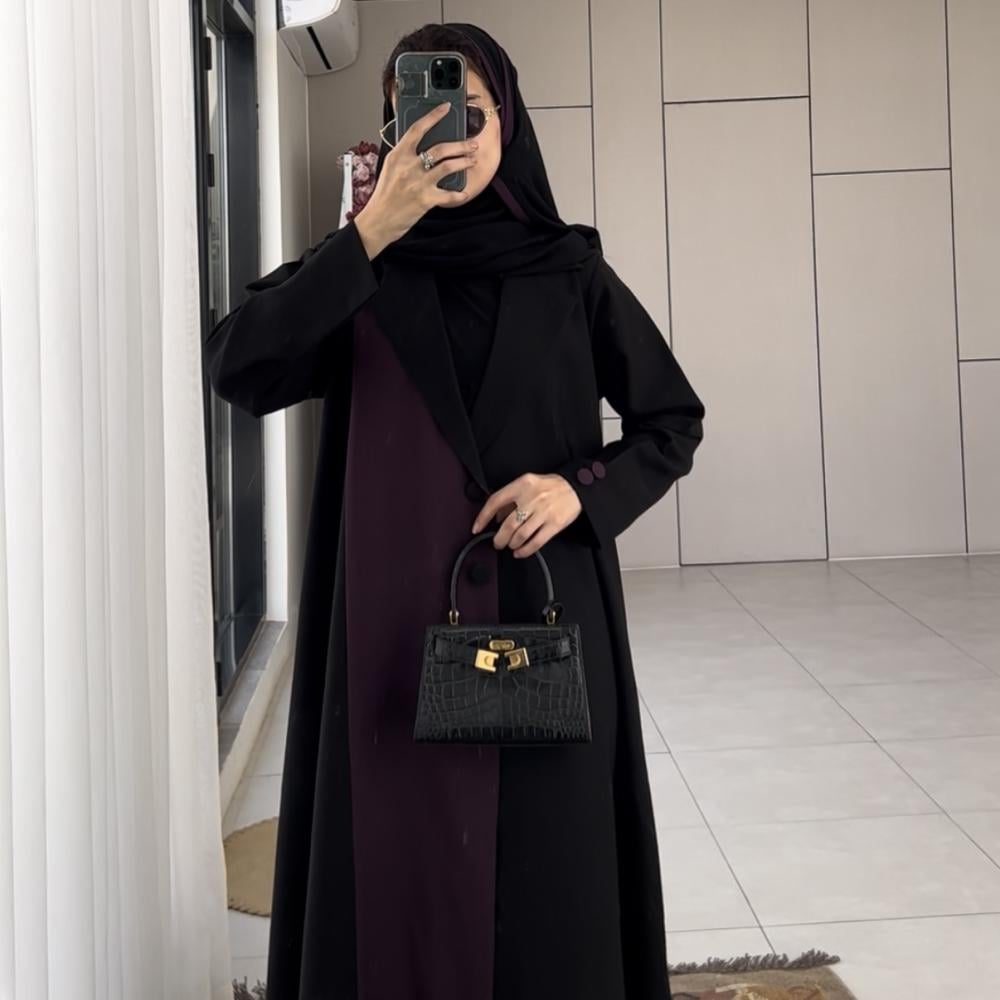 ✅ تقدرين تغيرين اللون الموف إلى أسود حسب ذوقك الشخصي – لأن التفصيل عندنا على ذوقك