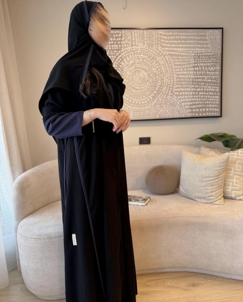 🔹 الإكسسوارات: طرحة بلون أسود سادة مع طرف بلون من اختيارك لتكملي لوكك بطريقة أنيقة